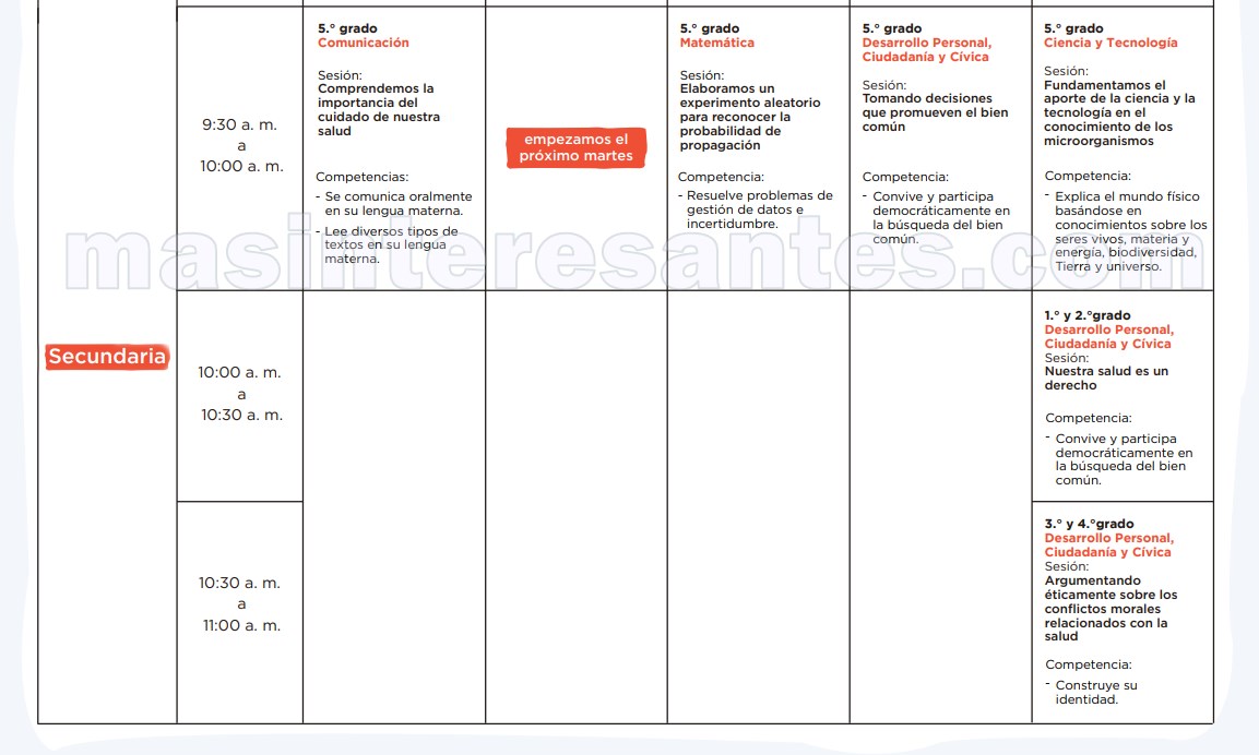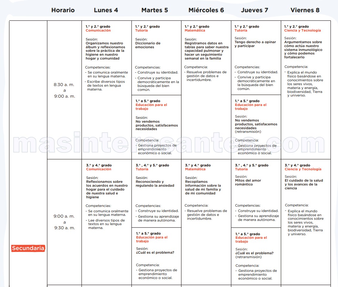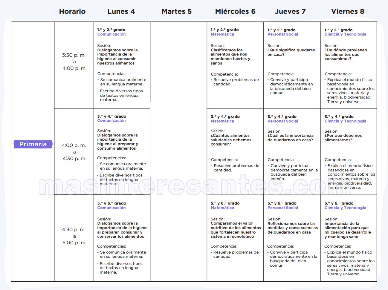 El Ministerio de Educación dió a conocer la Programación de la Semana 5 de la Estrategia de «Aprendo en casa» que corresponde desde el lunes 4 de mayo al viernes 8 de mayo. Descargue toda la programación en pdf aquí. A continuación, la programación en Radio y Tv de «Aprendo en casa».
