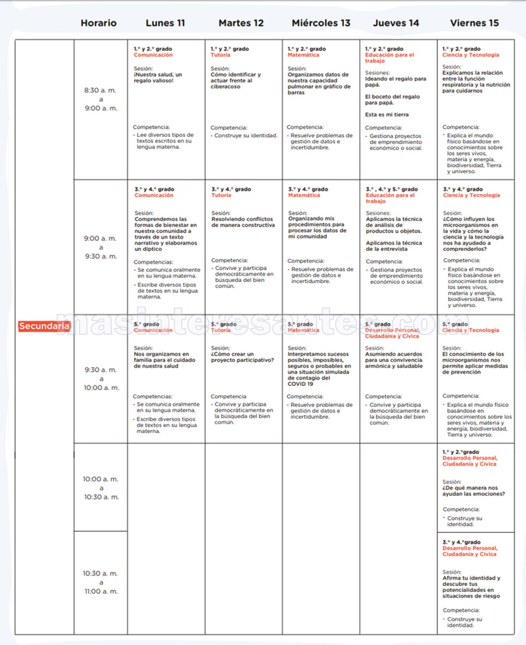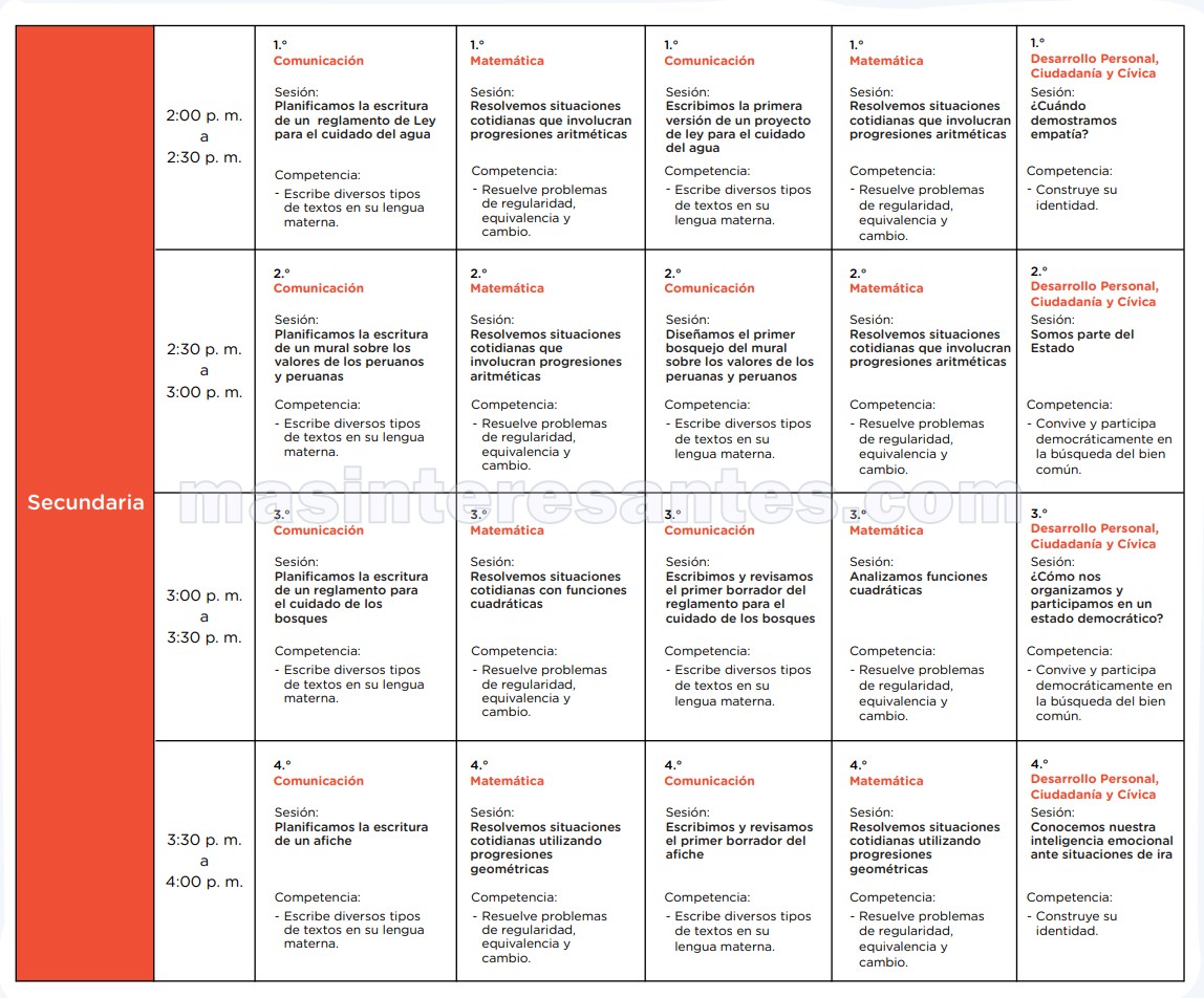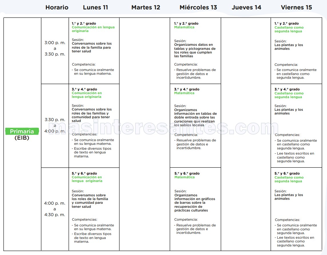 El Ministerio de Educación a través de la Estrategia de «Aprendo en casa» de Perueduca hace de conocimiento la Programación de la 6ª Semana (11 al 15 de mayo) por Radio y Televisión para los niveles Inicial, Primaria, Secundaria y otros. vea en las siguientes imágenes la programación que le corresponde. Descargue toda la programación en pdf aquí.